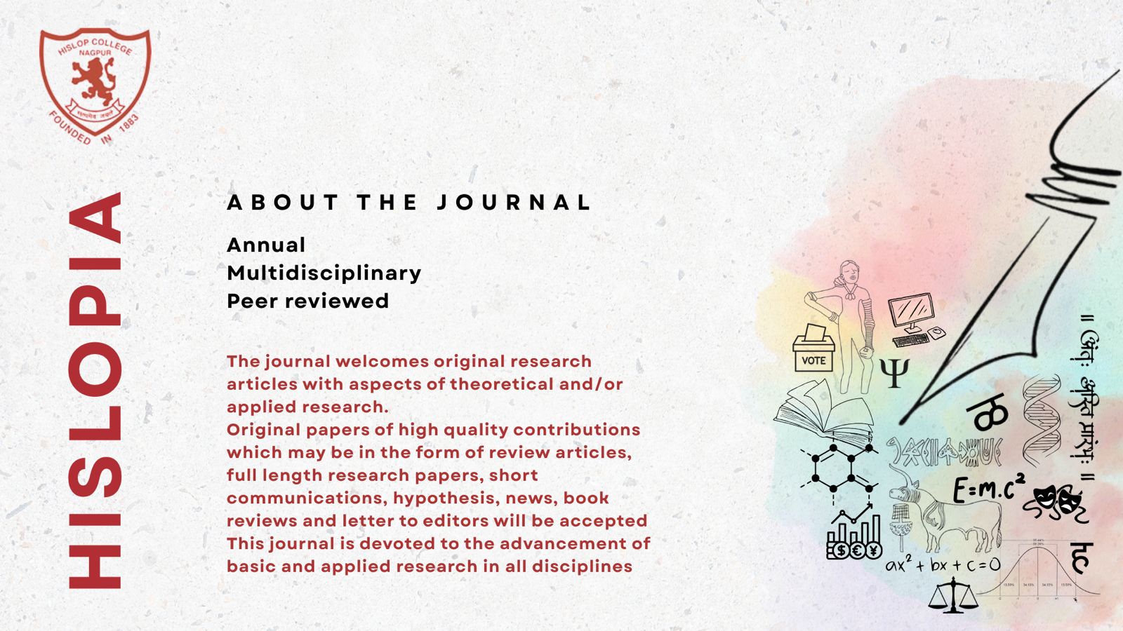The Journal welcomes original research articles covering either or both aspects of theoretical and applied research. Papers of high quality, original, theoretical, experimental and technical contributions which may be in the form of review articles, full length research papers, short communications, hypothesis, news, book reviews and letters to editors will be accepted. This journal is devoted to the advancement of basic and applied research in all disciplines.